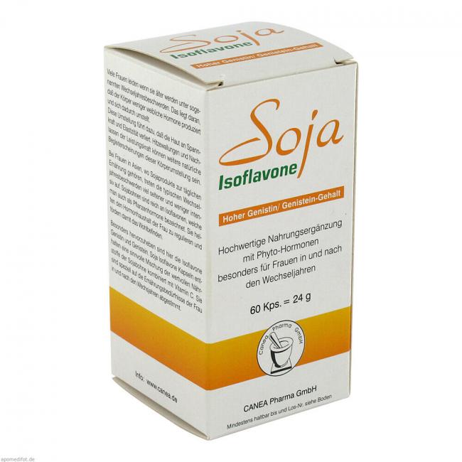 Nahrungsergänzungsmittel mit sekundären Pflanzenstoffen (Soja-Isoflavone)und Vitamin C. In Asien gehören Sojaprodukte zur täglichen Ernährung. In der europäischen Küche hingegen wird Soja nur selten verwendet. Die in Sojaeiweiß enthaltenen Isoflavone werden auch Pflanzenhormone genannt.