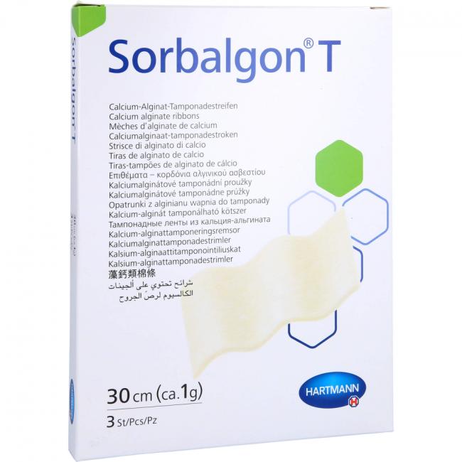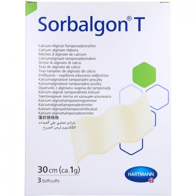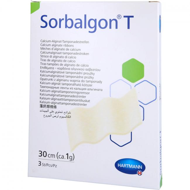 Pflichtangaben SORBALGON T Tamponade Streifen 1 g/30 cm, 3 Stück