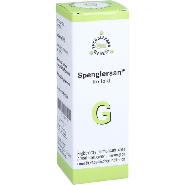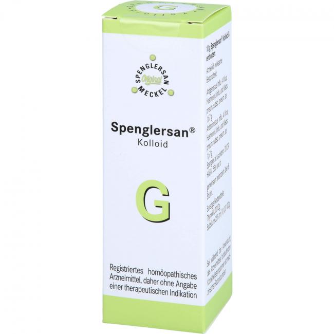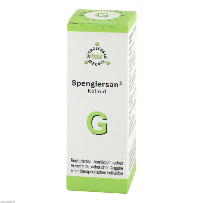 Spenglersan Kolloid G, Mischung. Anwendungsgebiete: Registriertes homöopathisches Arzneimittel, daher ohne Angabe einer therapeutischen Indikation.