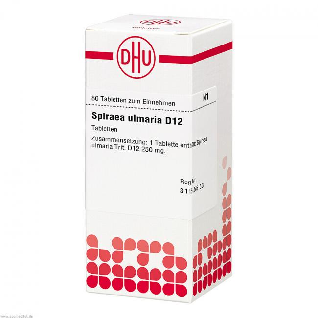 Spiraea Ulmaria D 12. Anwendungsgebiete: Registriertes homöopathisches Arzneimittel daher ohne Angabe einer therapeutischen Indikation. Warnhinweis: Enthält Lactose (Milchzucker) und Weizenstärke.