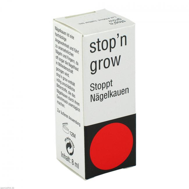 stop'n grow enthält zwei Bitterstoffe, die aufgrund des bitteren Geschmacks den Verwender davon abhalten seine Finger in den Mund zu stecken. Unbewusstes Nägelkauen ist deshalb nicht möglich. Bei regelmäßiger Anwendung von stop'n grow können die Nägel wieder schön nachwachsen, gesund und gepflegt aussehen. Es kann auch helfen Schäden in Folge von Daumenlutschen vorzubeugen und diese Gewohnheit aufzugeben.