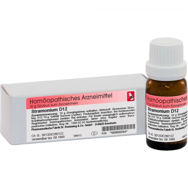 Stramonium D12, Globuli zum Einnehmen. Anwendungsgebiete: Registriertes homöopathisches Arzneimittel, daher ohne Angabe einer therapeutischen Indikation.