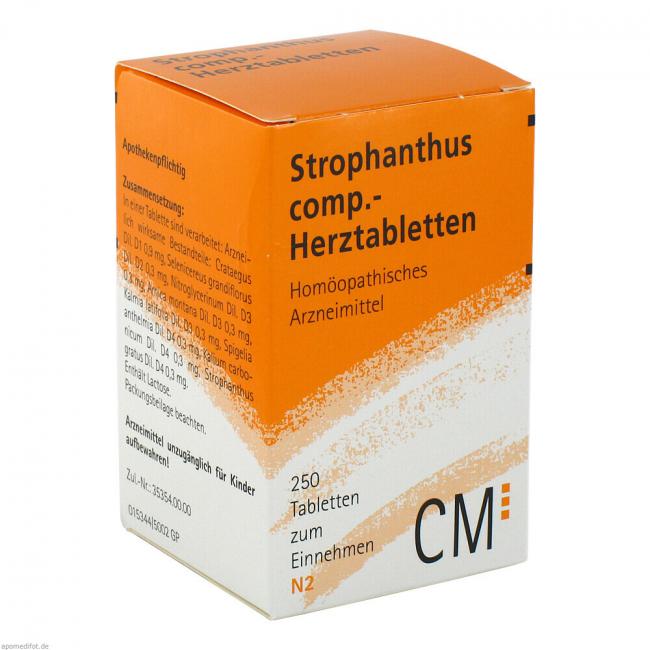 Strophantus comp. Herztabletten, Tabletten. Anwendungsgebiete: Die Anwendungsgebiete leiten sich von den homöopathischen Arzneimittelbildern ab. Dazu gehören: Nervöse Herzbeschwerden wie Herzstiche und Beklemmungsgefühl in der Herzgegend.
