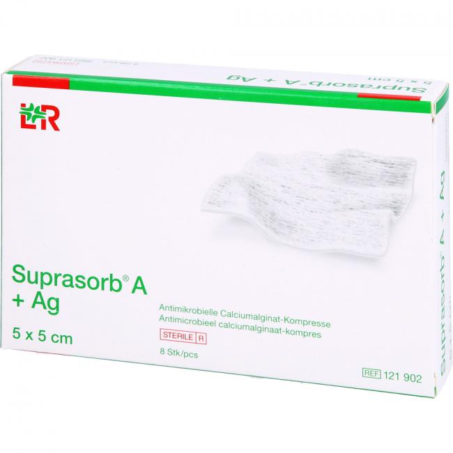 Produktinformationen SUPRASORB A+Ag Antimik.Cal.Alginat Kompr.5x5 cm, 8 Stück
