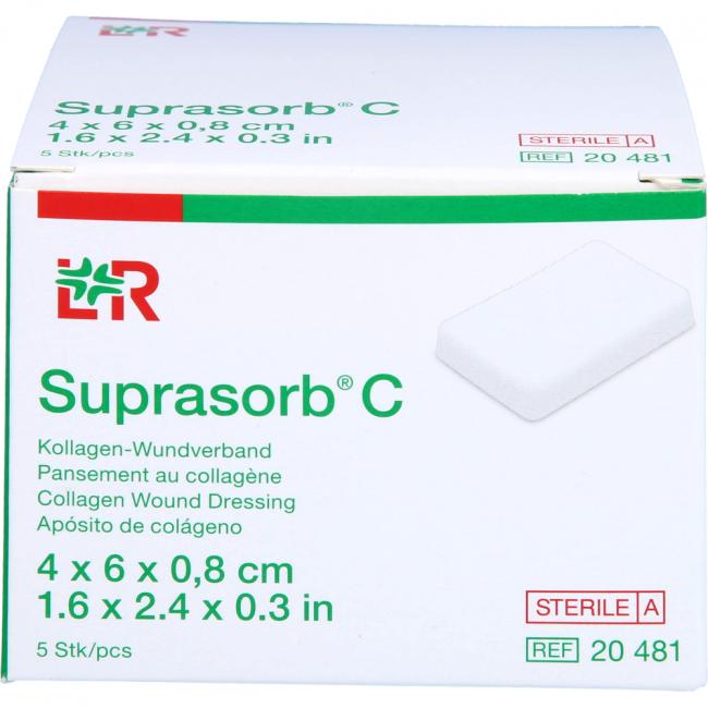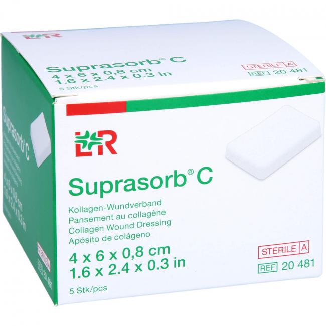 - Suprasorb C soll auf der Wunde feucht bleiben, eine Kombination mit anderen Produkten der feuchten Wundbehandlung (z.B. Suprasorb H Hydrokolloid-Verband) ist möglich.