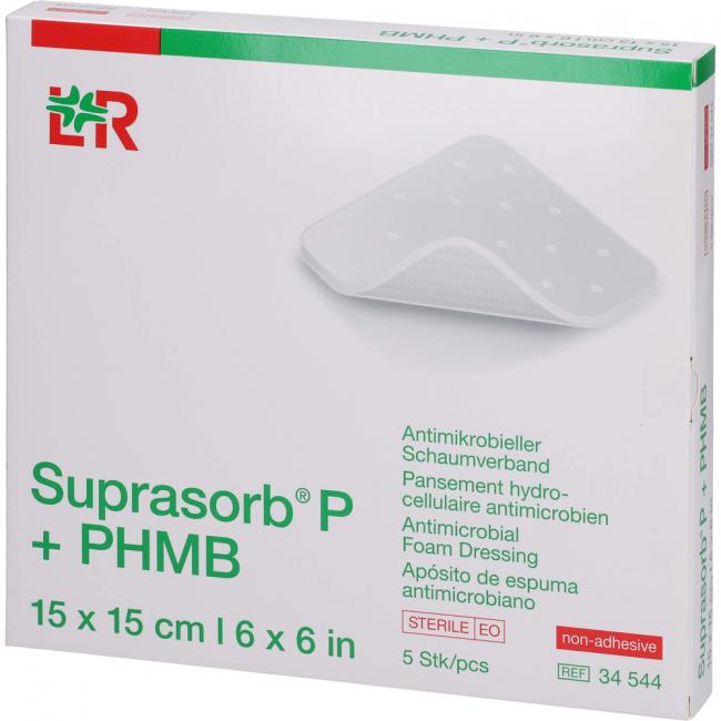 - Suprasorb P + PHMB kann als Sekundärverband bei infektgefährdeten und infizierten Wunden im Rahmen der regulären antimikrobiellen Therapie verwendet werden.