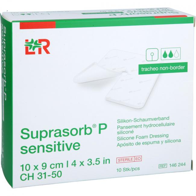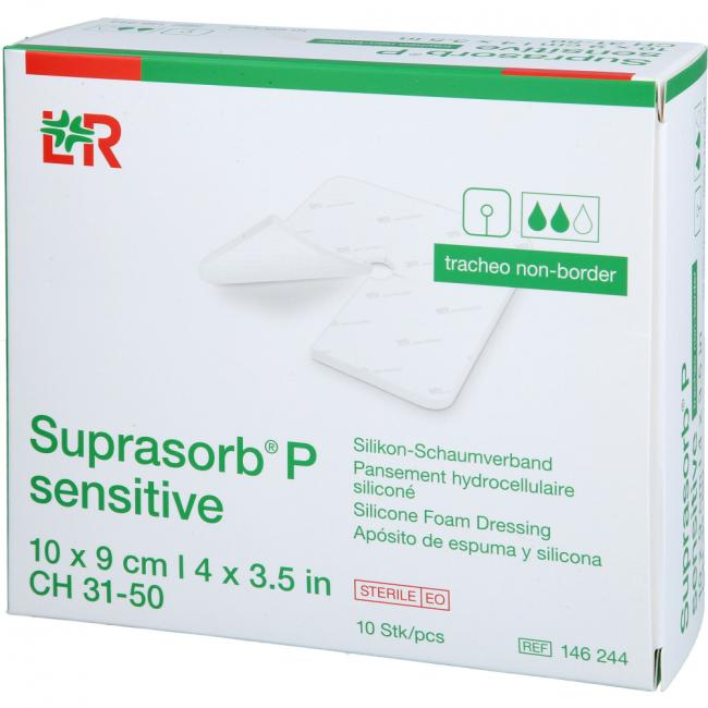 Pflichtangaben SUPRASORB P sen.PU-Schaumv.tracheo non-bor.9x10cm, 10 Stück