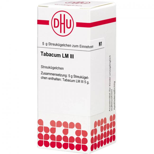 Tabacum LM III ist ein homöopathisches Arzneimittel. Registriertes homöopathisches Arzneimittel, daher ohne Angabe einer therapeutischen Indikation.