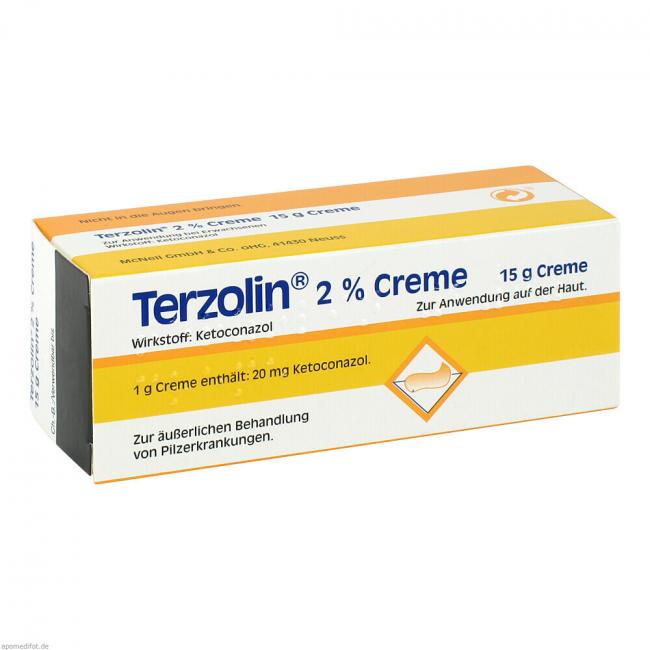 Terzolin 2 % Creme Ist ein pilztötendes Arzneimittel zur äußerlichen Behandlung von Pilzerkrankungen der Haut (Antimykotikum). Terzolin 2 % Creme wird bei entzündlichen Hautveränderungen mit Schuppen und Juckreiz (seborrhoischer Dermatitis oder seborrhoisches Ekzem) und Kleienpilzflechte (Pityriasis versicolor) angewendet. Terzolin 2 % Creme ist zur Anwendung bei Erwachsenen bestimmt.