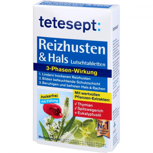 - Dieses Medizinprodukt enthält Lactose, Maltitol, Isomaltitol und Sorbitol. Bitte nehmen Sie tetesept Reizhusten und Hals Lutschtabletten daher erst nach Rücksprache mit Ihrem Arzt ein, wenn Ihnen bekannt ist, dass Sie unter einer Unverträglichkeit gegenüber bestimmten Zuckern leiden.