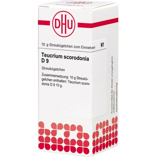 Teucrium scorodonia D 9. Anwendungsgebiete: Registriertes homöopathisches Arzneimittel, daher ohne Angabe einer therapeutischen Indikation. Warnhinweis: Dieses Arzneimittel enthält Sucrose (Saccharose / Zucker).