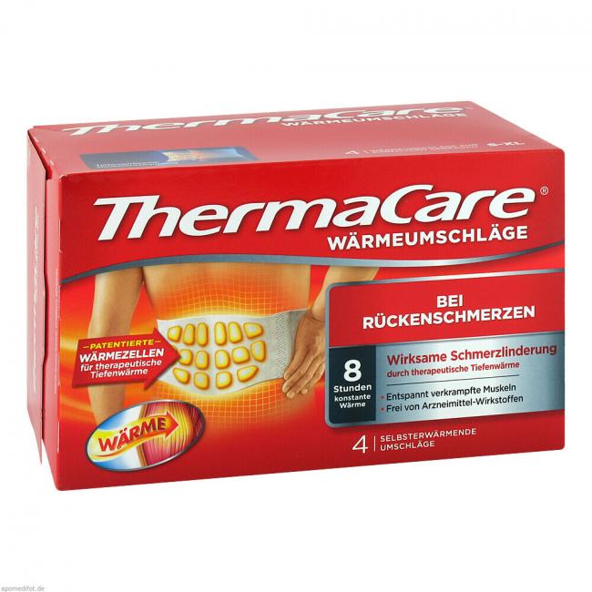 Pflichtangaben THERMACARE Rückenumschläge S-XL z.Schmerzlind., 4 Stück