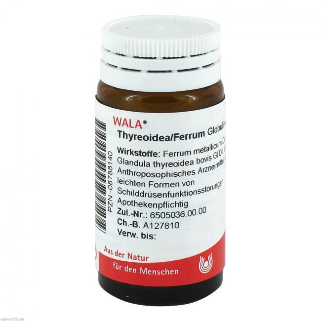 Thyreoidea/Ferrum, Globuli velati. Anwendungsgebiete: Gemäß der anthroposophischen Menschen- und Naturerkenntnis. Dazu gehören: Begleitbehandlung leichterer Formen von Schilddrüsenfunktionsstörungen.