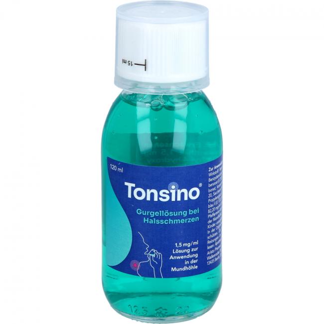 Pflichtangaben TONSINO Gurgel.b.Hals.1,5mg/ml Lsg.z.Anw.i.d.Mundh, 120 Milliliter