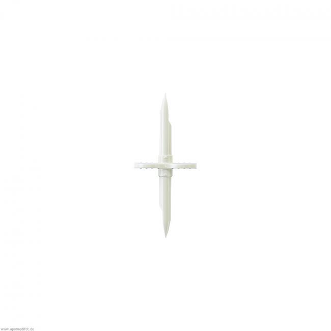 - Schlanker, kurzer Einstechdorn für müheloses Durchstechen auch stärkerer Stopfen.