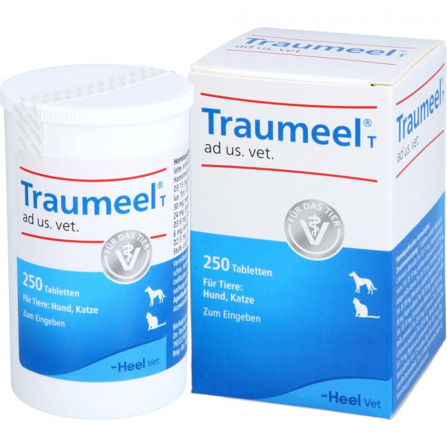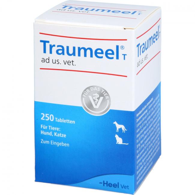 Traumeel T ad us. vet. Tabletten. Anwendungsgebiete: Registriertes homöopathisches Arzneimittel, daher ohne Angabe einer therapeutischen Indikation.