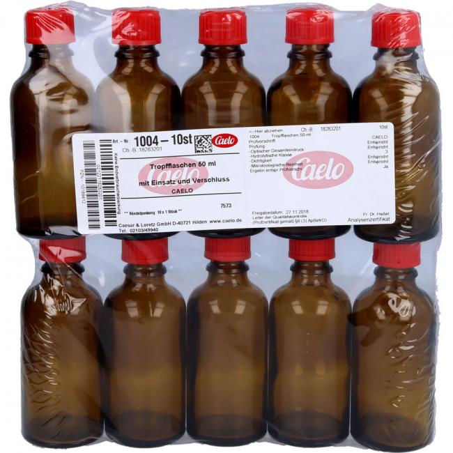 TROPFFLASCHE 50 ml braun m.Einsatz+Verschluss (10 St) Preise im Vergleich - hier günstig kaufen: