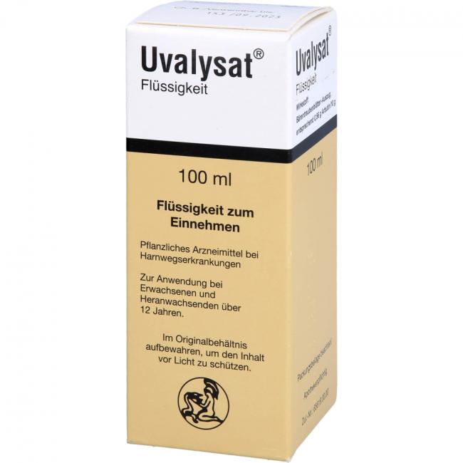 Uvalysat Flüssigkeit. Wirkstoff: Bärentraubenblätter-Auszug, entsprechend 0,56 g Arbutin/10 g. Anwendungsgebiete: zur unterstützenden Behandlung bei entzündlichen Erkrankungen der ableitenden Harnwege.
