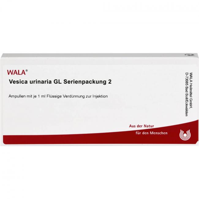 Vesica urinaria Gl Serienpackung II, Flüssige Verdünnung zur Injektion. Wirkstoff: Vesica urinaria bovis Gl. Anwendungsgebiete: Registriertes homöopathisches Arzneimittel der anthroposophischen Therapierichtung, daher ohne Angabe einer therapeutischen Indikation.