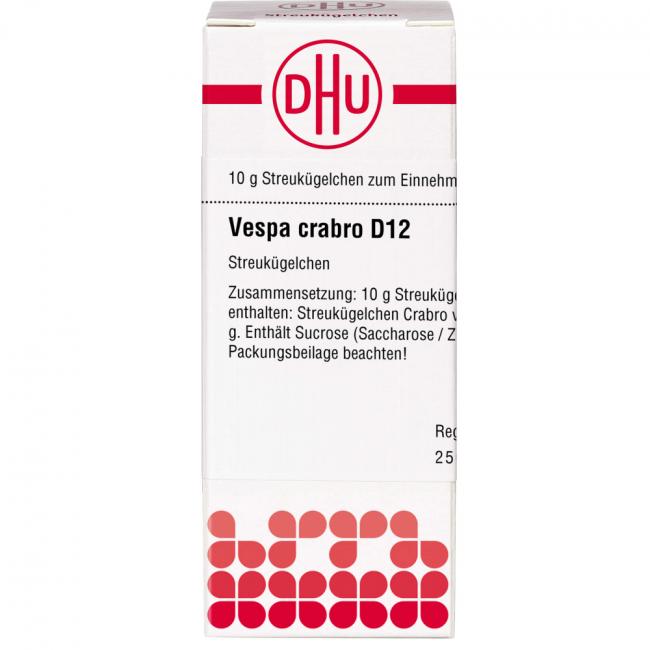 Vespa Crabro D 12. Anwendungsgebiete: Registriertes homöopathisches Arzneimittel, daher ohne Angabe einer therapeutischen Indikation. Warnhinweis: Dieses Arzneimittel enthält Sucrose (Saccharose / Zucker).