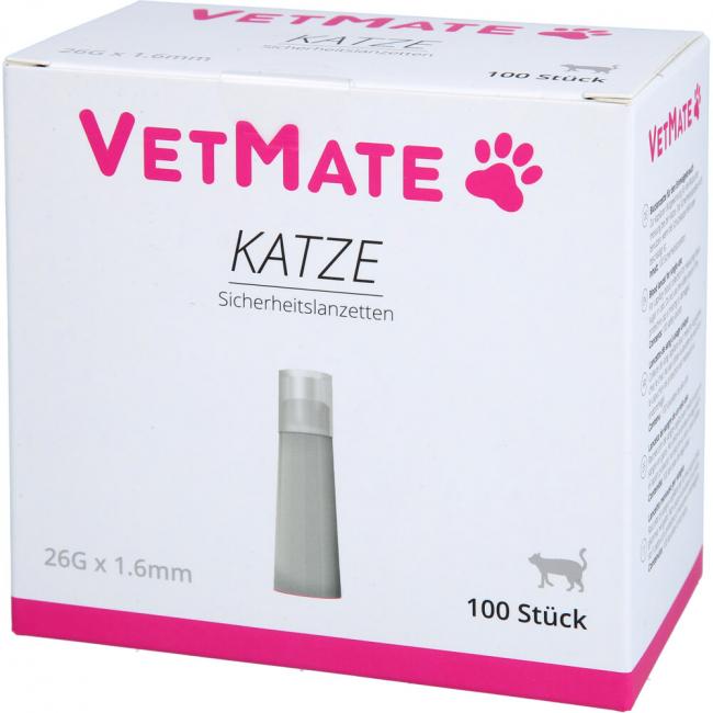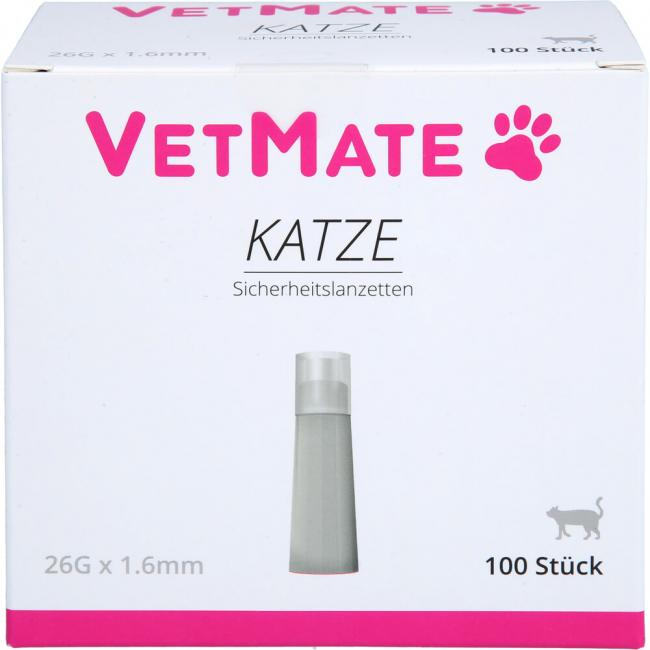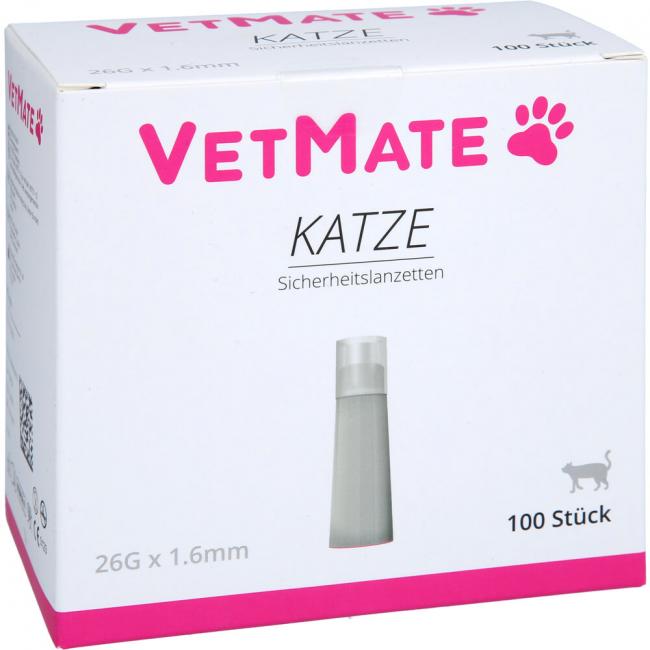 Pflichtangaben VETMATE Sicherheitslanzetten 26 G 1,6 mm Katze, 100 Stück