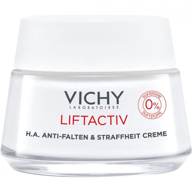 Vichy LIFTACTIV Anti-Falten & straffende Hyaluron Creme ohne Duftstoffe spendet der Haut dank Hyaluron langanhaltende Feuchtigkeit.