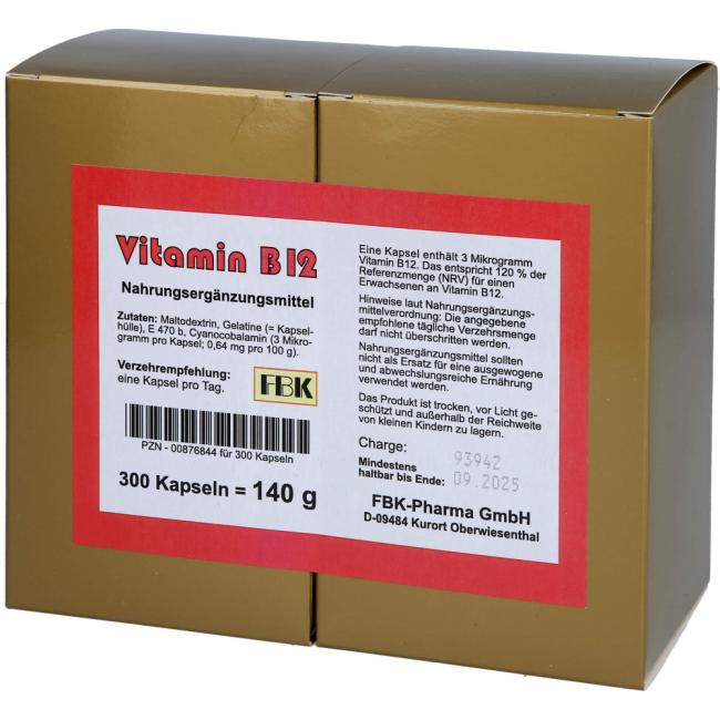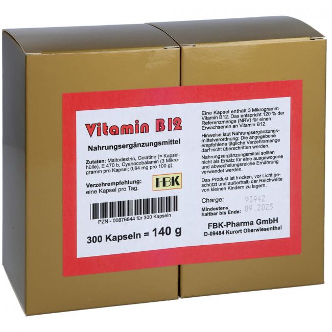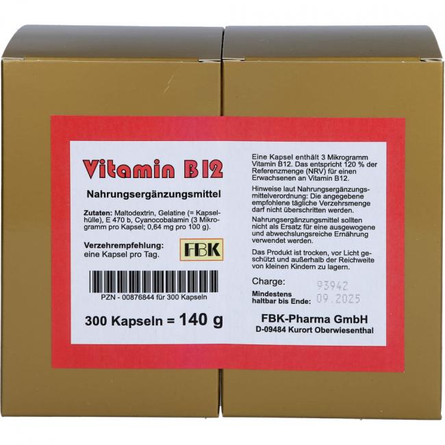 Pflichtangaben VITAMIN B12 KAPSELN, 300 Stück