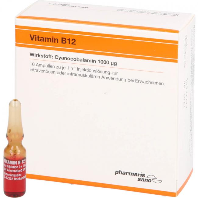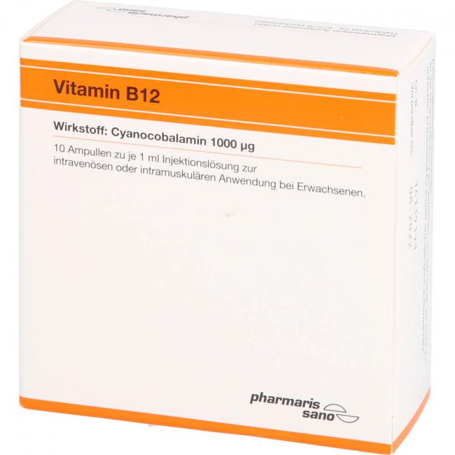 Vitamin B12 1 mg Injektionslösung. Wirkstoff: Cyanocobalamin. Anwendungsgebiete: zur Behandlung eines Vitamin-B12-Mangels, der ernährungsmäßig nicht behoben werden kann.