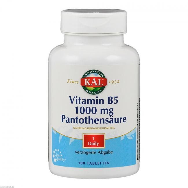 Produktinformationen VITAMIN B5 1000 mg Pantothensäure KAL Tabletten, 100 Stück