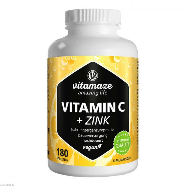 Produktinformationen VITAMIN C 1000 mg hochdosiert+Zink vegan Tabletten, 180 Stück