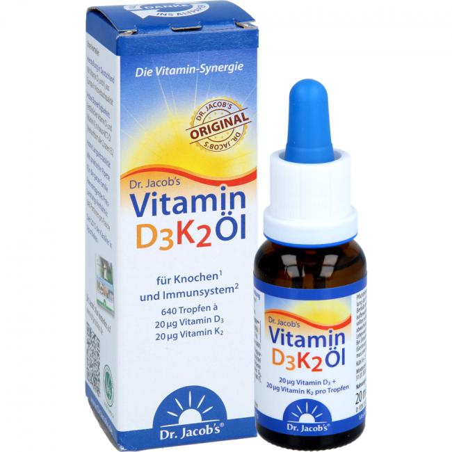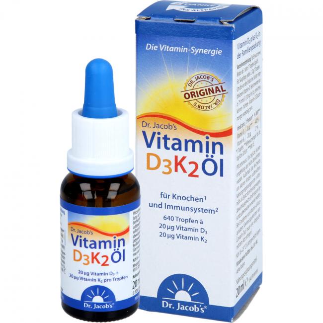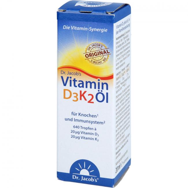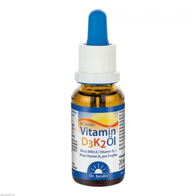 Produktinformationen VITAMIN D3K2 Öl 800 I.E.+20 μg D3+K2 Dr.Jacob's, 20 Milliliter