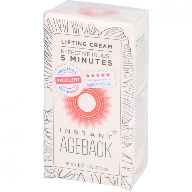 Die innovativen Inhaltsstoffe entfalten ihre Wirkung nur in der obersten Hautschicht. Was INSTANT AGEBACK leistet, ist kein Wunder, sondern das Ergebnis großer Fortschritte in der Kosmetikforschung. Verwendet werden ausschließlich erprobte Zutaten von höchster Qualität. Die dermatologische Verträglichkeit und Wirksamkeit von INSTANT AGEBACK wurde vom renommierten unabhängigen deutschen Prüfinstitut Dermatest bestätigt.