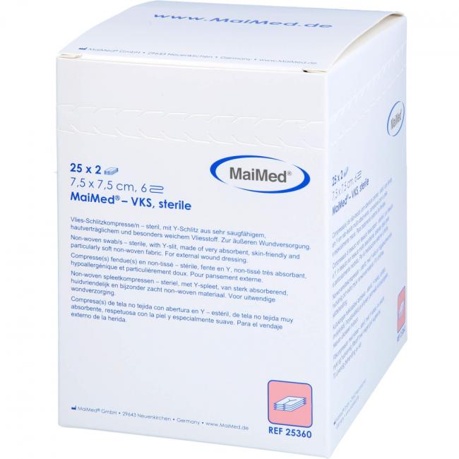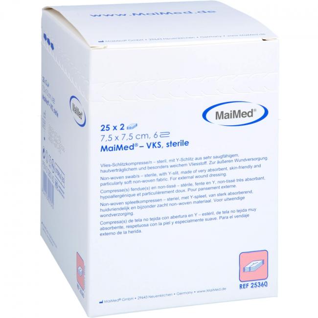Produktinformationen VLIES-SCHLITZKOMPRESSEN steril 7,5x7,5 cm 6fach, 25x2 Stück