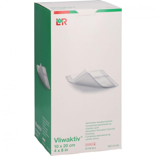 Produktinformationen VLIWAKTIV Aktivkohle-Saugkomp.steril 10x20 cm, 20 Stück