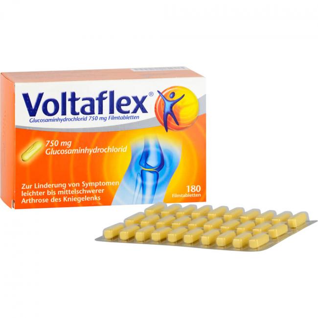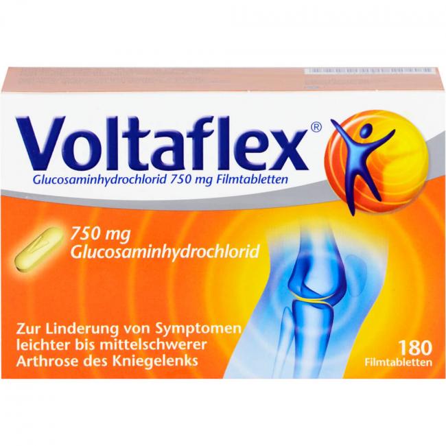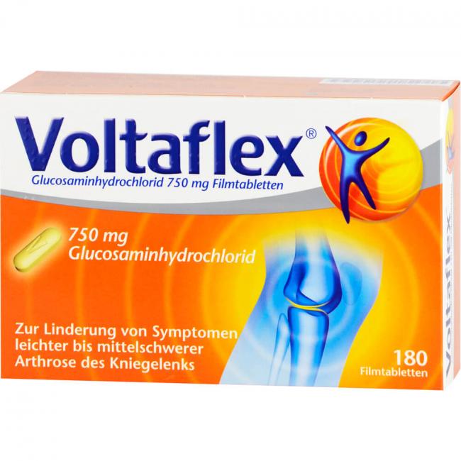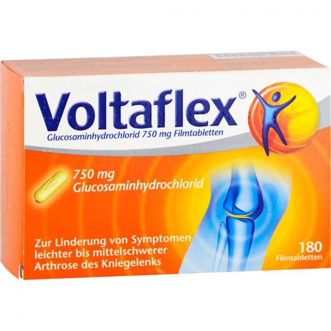 Voltaflex Filmtabletten Wirkstoff: Glucosaminhydrochlorid. Anwendungsgebiete: zur Linderung von Symptomen leichter bis mittelschwerer Arthrose (Degeneration) des Kniegelenks.