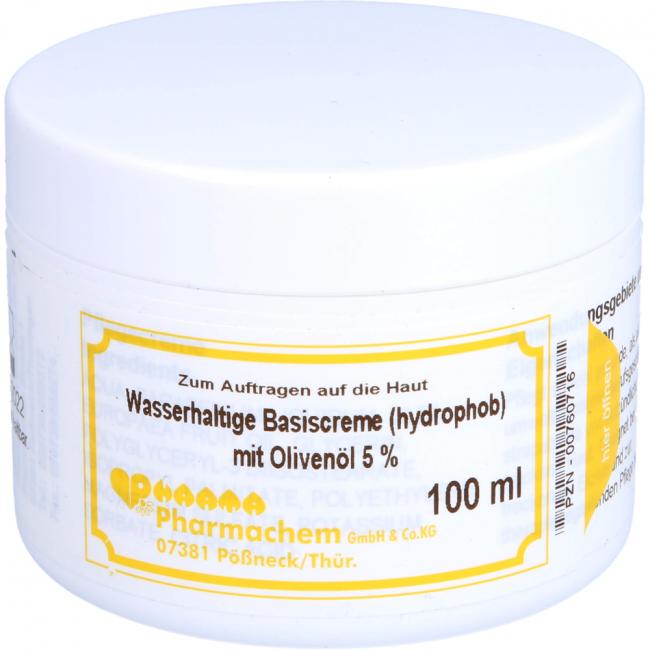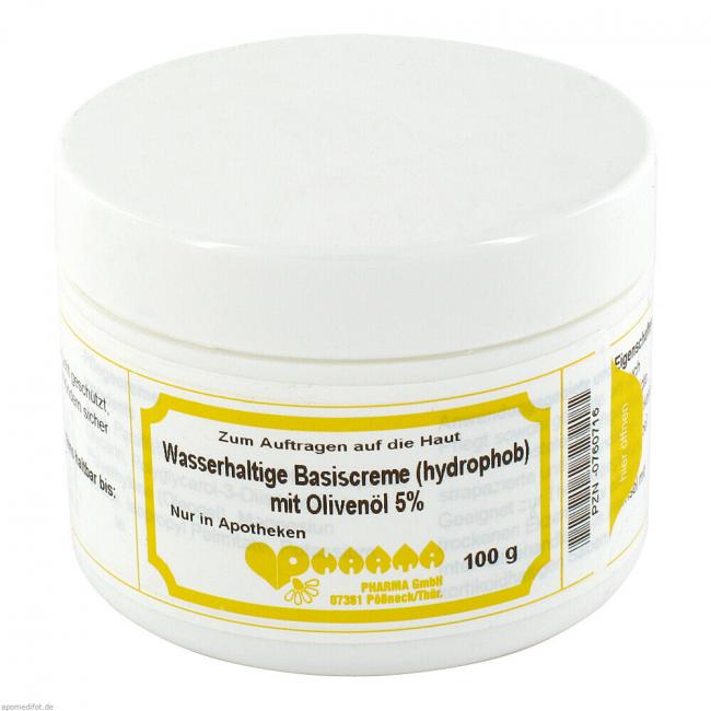 Produktinformationen WASSERHALTIGE Basiscreme hydrophob m.5% Olivenöl, 100 Gramm