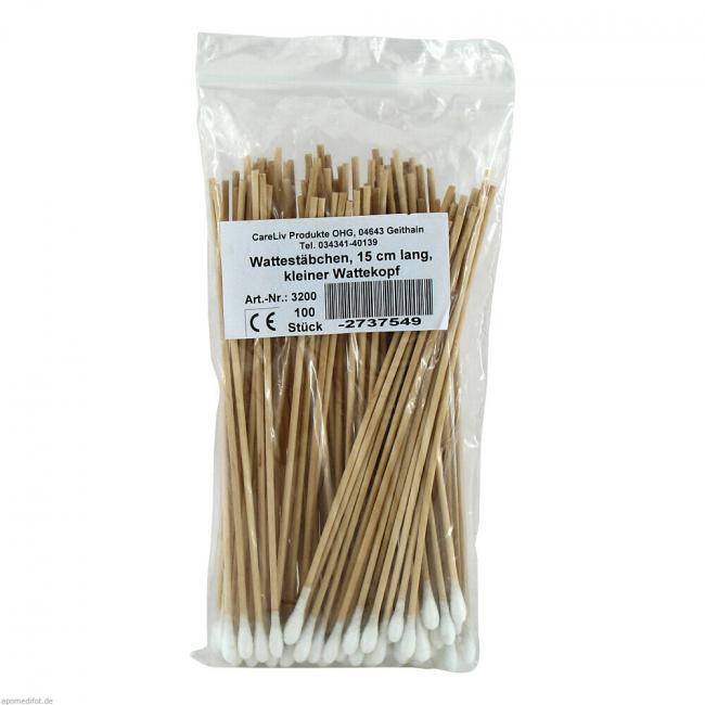 Pflichtangaben WATTESTÄBCHEN mit Wattekopf 15 cm klein, 100 Stück
