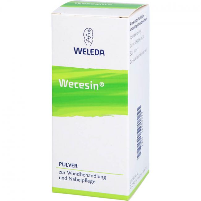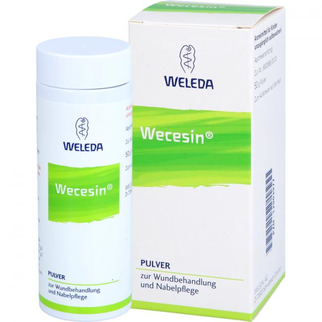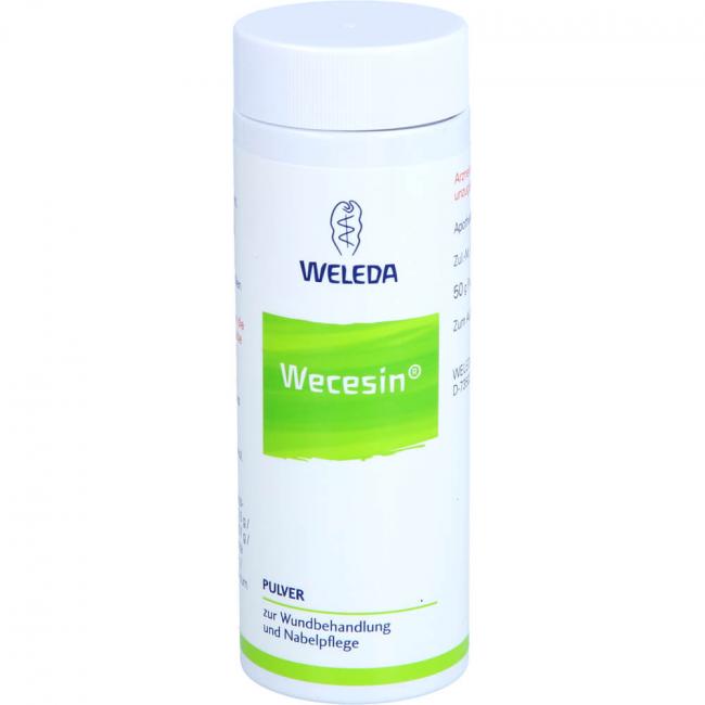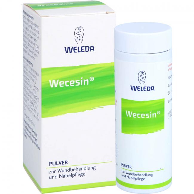 Wecesin Pulver. Anwendungsgebiete: gemäß der anthroposophischen Menschen- und Naturerkenntnis. Zur Anregung und Strukturierung der Haut- und Schleimhautregeneration. Dazu gehören: Oberflächliche, abtrocknende Wunden und Ekzeme sowie zur Nabelpflege bei Neugeborenen.