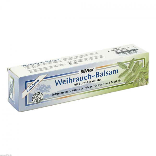 Weihrauch-Balsam eignet sich bestens zur Pflege der Haut, schützt die Haut, macht sie samtweich und geschmeidig. Er ist eine ideale Pflege für trockene Haut. Zur Unterstützung des Wohlbefindens bei rheumatischen Schmerzen hat er sich bewährt. Der Weihrauch wird von Boswellia Carterii und anderen Arten der Gattung Boswellia im Somaliland, Südost-Arabien und Indien gewonnen. Wird die Rinde der Weihrauchbäume angeschnitten, so tritt eine weiße Emulsion heraus, die nach einiger Zeit erstarrt. Es bilden sich dann gelbe Körner (Tränen oder Tropfen), diese werden von den Stämmen abgelöst oder vom Boden aufgelesen. Durch Destillation mit Wasserdampf erhält man aus den Körnern 5 bis 9% ätherisches Öl. Weihrauchöl ist farblos bis gelblich und riecht angenehm balsamisch oder schwach zitronenartig.
