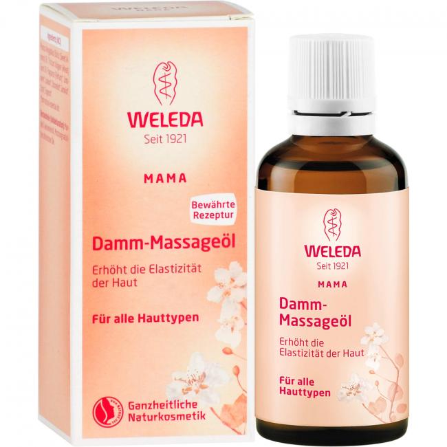 Die meisten Frauen wünschen sich eine Geburt ohne Dammschnitt. Eine Geburtsvorbereitung, zu der auch ein gezieltes Lockern des Dammgewebes gehört, erhöht die Chance dafür. Regelmäßig angewendet ab der 34. Schwangerschaftswoche, macht das Weleda Damm-Massageöl das Gewebe weich und dehnungsfähig. Die Massage mit der Komposition auf Grundlage von feinstem Mandelöl und an Vitamin E reichem Weizenkeimöl lockert das Dammgewebe und erhöht seine Elastizität. Die durchblutungsfördernde Massagewirkung verbessert die Geschmeidigkeit des Gewebes zusätzlich.