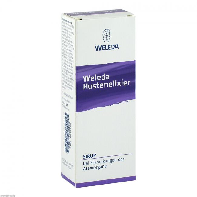 Weleda Hustenelixier ist ein anthroposophisches Arzneimittel bei Erkrankungen der Atemorgane. Anwendungsgebiete: Gemäß der anthroposophischen Menschen- und Naturerkenntnis gehören zu den Anwendungsgebieten akute katarrhalische Entzündungen der Luftwege; zur Förderung des Abhustens von zähem Schleim und zur Linderung des Hustenreizes.