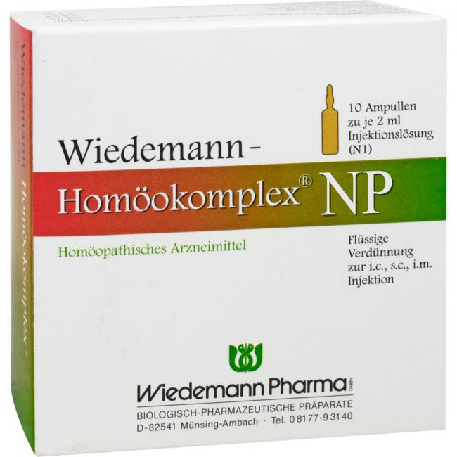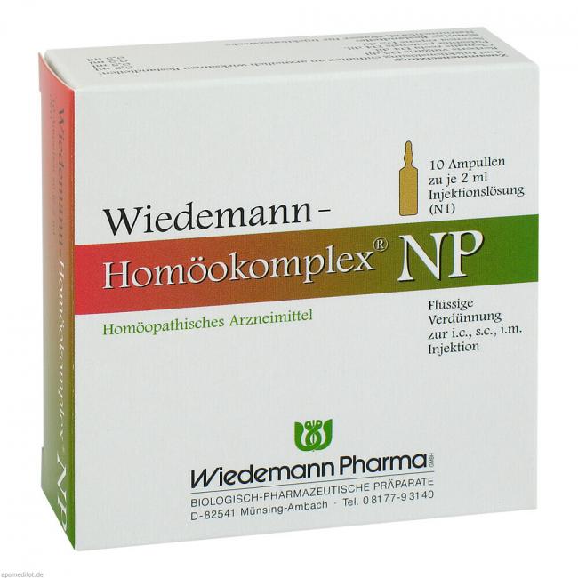 Wiedemann-Homöokomplex NP, Flüssige Verdünnung zur Injektion. Anwendungsgebiete: Registriertes homöopathisches Arzneimittel daher ohne Angabe einer therapeutischen Indikation.