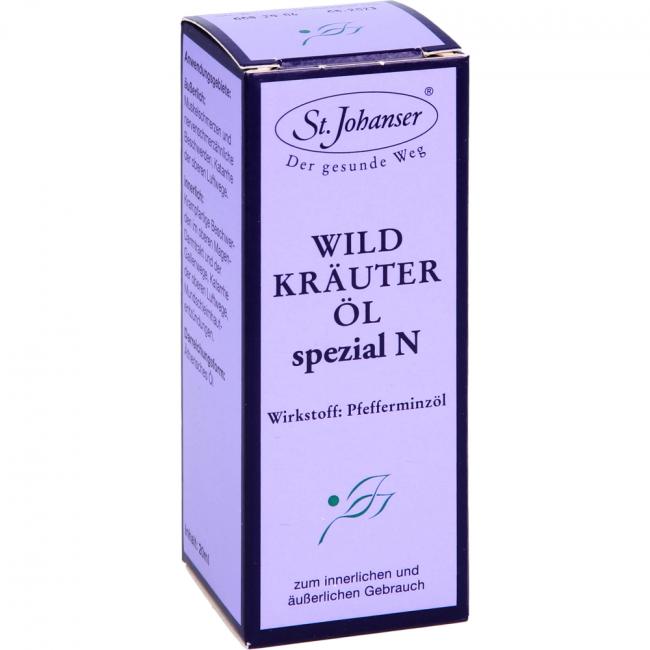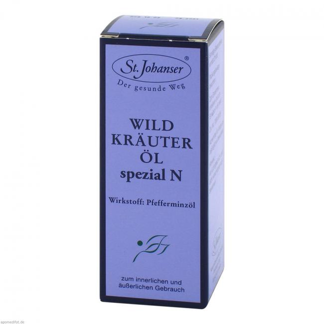 Wildkräuteröl spezial N, Ätherisches Öl. Anwendungsgebiete: Innerliche Anwendung bei Krampfartigen Beschwerden im oberen Magen -Darm-Trakt und der Gallenwege, Katarrhen der oberen Luftwege, Mundschleimhautentzündungen. Äußerliche Anwendungen: Muskelschmerzen und nervenschmerzähnliche Beschwerden, Katarrhe der oberen Luftwege.