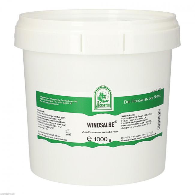 Die Windsalbe enthält Erdnussöl, Lorbeeröl, Bienenwachs, Lavendelöl und Rosmarinöl. Die sinnvoll abgestimmte Kombination hat krampflösende Eigenschaften und dient zur Unterstützung der Verdauungsfunktion bei Verdauungsbeschwerden.