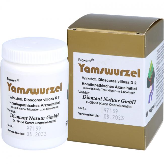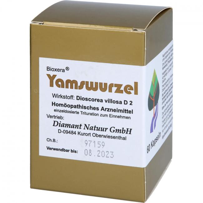 Bioxera Yamswurzel, Kapseln. Anwendungsgebiete: Registriertes homöopathisches Arzneimittel, daher ohne Angabe einer therapeutischen Indikation.