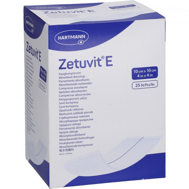 Pflichtangaben ZETUVIT E Saugkompressen steril 10x10 cm, 25 Stück