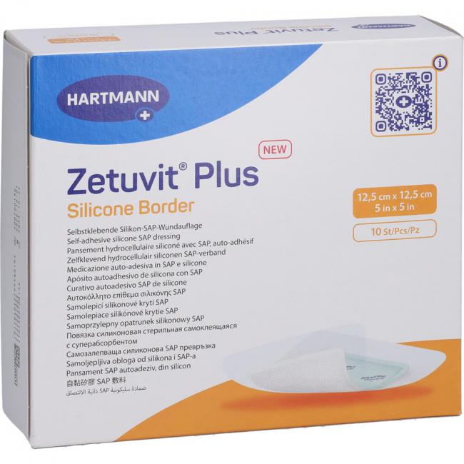 Produktinformationen ZETUVIT Plus Silicone Border steril 12,5x12,5 cm, 10 Stück