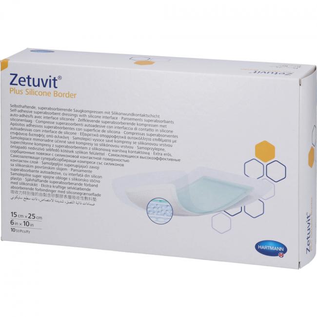 Produktinformationen ZETUVIT Plus Silicone Border steril 15x25 cm, 10 Stück