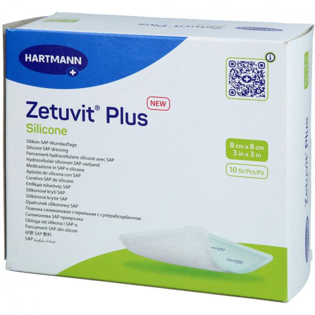 Pflichtangaben ZETUVIT Plus Silicone steril 8x8 cm, 10 Stück