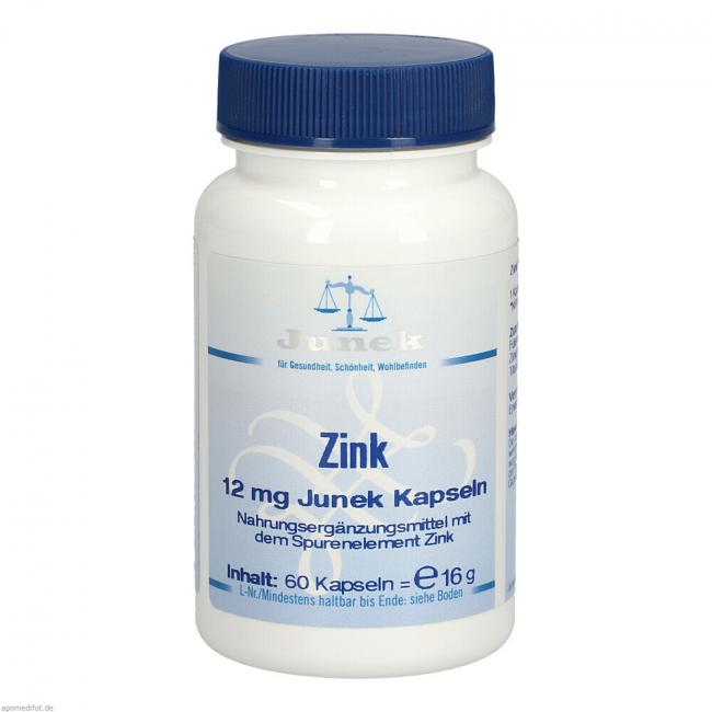 Pflichtangaben ZINK 12 mg Junek Kapseln, 60 Stück